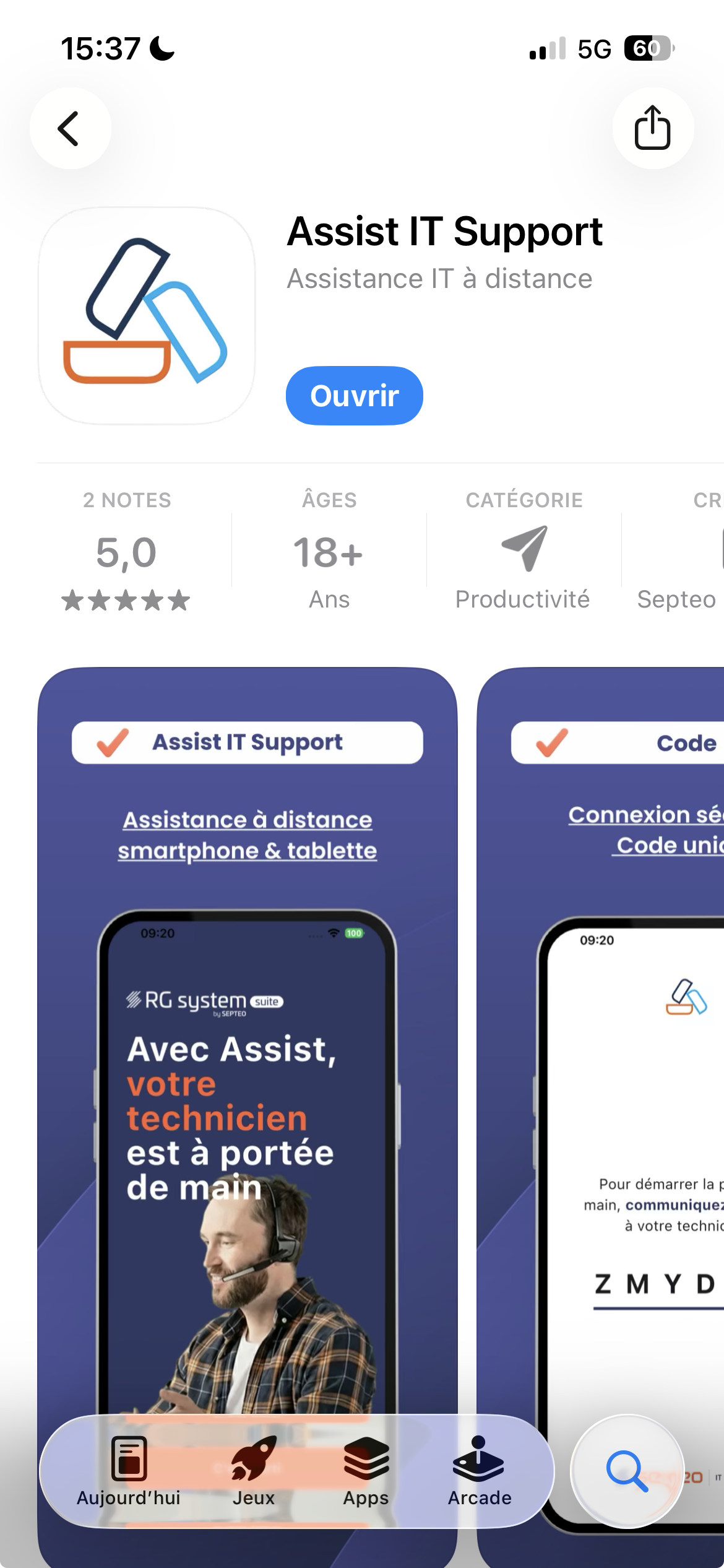 Sans l'application Assist IT Solution, aucune prise en main à distance sur mobile ne peut être initiée.