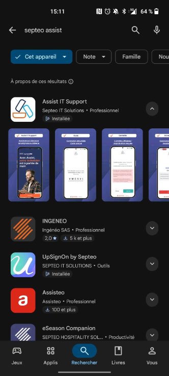 - Téléchargement et ouverture de l’application Assist IT Support ;