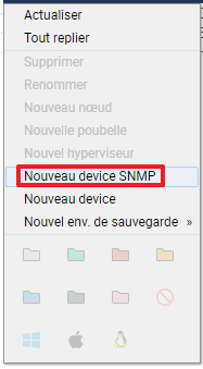 Pour commencer à utiliser les Devices SNMP, vous devez commencer par créer un agent de ce type. Pour cela, deux méthodes s'offrent à vous, depuis l'arborescence ou depuis le voisinage réseau.